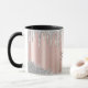 Esta plantilla de taza de lujo cuenta con lámina metálica de oro rosa y rosa sonrosado bajo purpurina que gotea. Detalles negros personalizables y imagen de fondo personalizada.