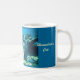 ¡Añada su nombre a esto personalizado debajo de la taza del mar! Un pescado alimenta cerca de las fans y del coral de mar en un filón en el mar del Caribe, de Majahual, México.