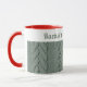 Acogerse este invierno con una taza vestida con un suéter cálido. Este caluroso tazón de invierno presenta un suave patrón de suéter verde pastel y el texto 'Abrazos y cacao caliente en el mismo color. Puede editar el texto y optar por reemplazar el nombre existente por el propio. Personaliza esta taza para ti o para alguien especial. Hace un gran cumpleaños y un regalo para los navidades. Ver la colección completa de SWEATER MUGS | HUGS & HOT COCOA aquí: https://www.zazzle.com/collections/sweater_mugs-119313634791423161
