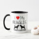 Esta taza de personalizado "I Love My Two Beagles" es perfecta para cualquiera que tenga dos beagles, sólo agregue sus propios nombres de beagle.
