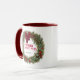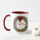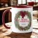 Celebre las vacaciones con un toque festivo en una casa de campo utilizando esta encantadora taza de Navidades. La clásica corona acuática de pino, holly y eucalipto está atada con un gran arco de manteca de búfalo rojo para unas vacaciones atemporales. Ideal para tomar café, té o sidra a la parrilla, esta taza hace un delicioso regalo de temporada para los seres queridos o una alegre adición a su propio vajilla de cocina de vacaciones. Personalízalo por un conservadurismo único que combina la modernidad de la casa de campo con la tradición de los Navidades.
