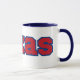 Este tazón de café personalizado presenta un diseño que muestra la palabra "Texas" en un tipo de letra de impresión Sports World con letras rojas, contorno azul en este tema y estilo de orgullo del estado personalizado. La llanta y la manecilla están acristaladas con colores a juego disponibles en la construcción de cerámica de microondas y lavavajillas de 11 onzas o 15 onzas.