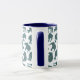 Un divertido Ringer Coffee Mug, con siluetas elefantes, llenas de un patrón paisley azul oscuro y borgoñoso, sobre un fondo blanco que se puede cambiar si se desea. Parte de la colección "Heffalumps" de Posh & Painterly.