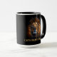 Personalizado Divertido "Amo a mi gato" Café de león con fondo dorado y negro con la cabeza de león. Personaliza tu taza con el nombre de tus gatos o el texto que elijas. Haga clic en Editar diseño para cambiar la imagen.
