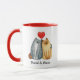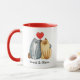 La Pareja De Gatos personalizados Denomina El Café Rojo Personalizado. Perro de ilustracion de pareja de gatos. Personaliza con los dos nombres que elijas. Con una doble cara envuelta alrededor del diseño con corazón rojo, esta taza de café/té sería un regalo ideal para el boda, el regalo de aniversario o el regalo de Día de San Valentín!