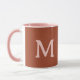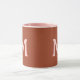 Un fondo naranja quemado muestra un Monograma personalizado rosa claro.