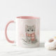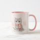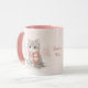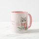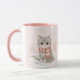 This adorable coffee mug features a cute, sitting kitten wearing a pink and white striped scarf, set against a soft, snowy winter scene. The whimsical watercolor style creates a cozy, dreamy look. It is fully personalizable; simply add a custom name to the design. This charming mug is the perfect holiday or birthday gift for cat lovers, kitten owners, and anyone who loves cute, pastel winter decor.