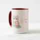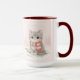 This adorable coffee mug features a cute, sitting kitten wearing a pink and white striped scarf, set against a soft, snowy winter scene. The whimsical watercolor style creates a cozy, dreamy look. It is fully personalizable; simply add a custom name to the design. This charming mug is the perfect holiday or birthday gift for cat lovers, kitten owners, and anyone who loves cute, pastel winter decor.