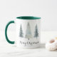 Celebrate the holiday season with this charming personalized Christmas mug. Featuring a beautiful design of evergreen trees and the festive words "Merry Christmas," and a name on the reverse, this mug adds a touch of winter wonder to your seasonal celebrations. Whether you're enjoying a hot beverage on a chilly day or gifting it to someone special, this mug brings warmth and cheer. Personalize it with a short message and a name to make it truly unique. Perfect for holiday mornings, gift exchanges, or as a thoughtful present for family and friends, this mug is sure to become a holiday favorite.