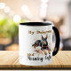 Pets Watercolor Blacks and Browns DOBERMAN and Morning Coffee mug. Personalize as elegant keepsake. A strikingly beautiful dog breed, a loving companion, loyal friend and morning coffee. Just a breath taking moment of time, as the business of the day begins. This Mug comes with stylish print and Elegant Script title, ''My Doberman and Morning Coffee''., A strong Watercolor Image of A Doberman Pinscher In all its Natural Beauty. Click the' Personalize this Template' Button, use your backspace key to remove the template words, add in your own words,