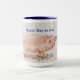 Un lindo cerdo gordito con un ladrón encaramado en su hocico está deseando un- ¡Feliz día para ti! ¡Un divertido tazón/regalo para todos los amantes del cerdo y del pájaro! Pintura original del artista internacional Jan Law