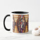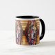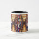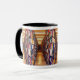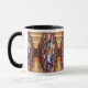 Esta taza colorida ofrece un modelo de repetición de pasillos de estantes de librería en las pilas de una biblioteca enorme. La iluminación brillante revela espinas dorsales del libro en un caleidoscopio de colores: rojo, verde, azul, negro, blanco, oro, marrón, púrpura. El ángulo simétrico crea los modelos geométricos abstractos que parecen llevar al infinito. Las reflexiones en el piso recientemente encerado contribuyen al modelo total.