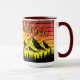 Taza Pine Tree Forest Over Mountains & Retro Sunset
