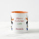 Esta linda taza presenta un adorable pingüino de esquí de nieve y su propio texto personalizado. El pingüino está vestido con una bufanda naranja y gafas azules, y está tostando en el esquí. Unos cuantos copos de nieve se escurren a su alrededor. La imagen se repite dos veces, con tres campos de texto para el texto de su personalizado en el medio. ¡Festividad y luminosidad!