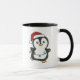 El pingüino en Navidades con luces de hadas. Animales divertidos con regalos y nieve para las vacaciones. Un saludo de Navidades dulces. Los pingüinos son lindos animales y perfectos para los Navidades.
