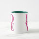 The floral coffee mug features the word "LOVE" in a floral lettering extracted from a macro photo of a spring blooming pink hydrangea.