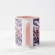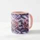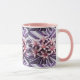 Esta taza Combo Rosa presenta una imagen de arte digital de siete lirios rosados en un patrón circular sobre una lavanda metálica y fondo plateado. La imagen está enlosada en la taza. Las lirios rosas son de un estilo suave y etéreo con pétalos brillantes que tienen una capa de perlas. El fondo tiene líneas radiantes dramáticas que crean un efecto de arranque, con el púrpura en el centro cambiando a lavanda más ligera y tonos plateados. La taza es un tazón combinado. La taza está equipada con microondas y lavavajillas. La taza está hecha de cerámica fuerte. La taza rosa cumple con los requisitos de la FDA para la seguridad de los alimentos y bebidas. Esta taza de lirios sería buena para el Día de Lily el 20 de Octubre.
