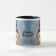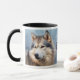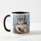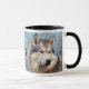 ¡Esta colorida taza celebra al majestuoso perro malamute de Alaska! Dos lados de la taza tienen un hermoso retrato de un Malamute contra un frío fondo de invierno. Los colores predominantes son el azul, el marrón y el blanco cremoso. En el centro está el guión que dice Alaskan Malamute, pero puedes cambiarlo o incluso personalizarlo, si lo deseas.