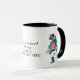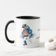 Una taza blanca con labio y mango negros y un caprichoso diseño pirata de frente y espalda, de una pintura acuarela de Judy Adamson. Añade el nombre de tu elección al texto donde dice, 'Esta taza pertenece a TU NOMBRE AQUÍ'. Tarjetas de felicitación y camisetas con este diseño también están disponibles en mi tienda.