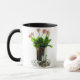 Estas tarjetas, camisetas y otros objetos están adornados con una foto de un ramo de tulipanes rosas en un lujoso cántaro metalizado.