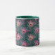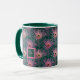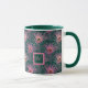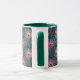 Taza Plumas de pavo real rosado y monograma sobre verde