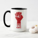 Esta obra de arte muestra un puño rojo levantado y las palabras Poder para el Pueblo.