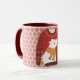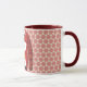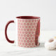 This pretty and cute mug features my original graphic art of an 'ugly sweater' with a polar bear on the sweater and striped sleeves. It was put on a geometric pattern in the background in peach-pink color tones. It has a dark red color inside it and on the handle. These are 11-ounce mugs, just the perfect size for your home brewed coffee or tea - or even hot chocolate! It would make a great gift, and you can put packets of coffee, tea bags or hot chocolate inside. One other gift idea is putting a little plant in it to make it extra special for your loved one. A fun Christmas Holiday gift for anyone.