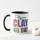 It's a polymer clay day! Bring this mug to your next polymer retreat, an upcoming class, or leave it at your clay table. Fill it with coffee or art supplies! The letters of "CLAY ALL DAY" are filled with Jubilee Cane millefiori designs by Lisa Clarke.