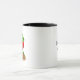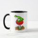 Arte de rana dibujado a mano, rana verde en un caprichoso seto rojo. Back of coffee mug dice, "Get Froggy with it" pero puedes editar ese texto o eliminarlo.