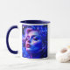 Un visage féminin mystérieux baigné dans une lumière cosmique, avec des reflets violets et bleus qui évoquent la beauté de l’univers. Son regard intense est entouré d’étoiles scintillantes, tandis que ses cheveux semblent flotter dans un halo céleste. Le contraste entre les teintes profondes et les nuances lumineuses crée une atmosphère futuriste et envoûtante. Une représentation parfaite d’une femme galactique dans un univers onirique.
