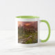 Funcionamientos de una corriente de la montaña en medio de wildflowers
