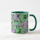 Pretty purple floral pattern with green leaves, popular ornamental design.