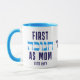 PRIMERO HANUKKAH COMO MOM mug con TEXTO DE PERSONALIZABLE. Hanukkah está escrito en hebreo. Puedes PERSONALIZAR el 'AS MOM' (p. ej., ¿reemplazarlo con DAD, tal vez?) y PERSONALIZAR el texto en el centro con tu nombre o el nombre y/o año de tu bebé. Una hermosa taza de recuerdo hito para una nueva madre celebrando su primer Hanukkah "materno". Concordancia de sudaderas con la versión de papá disponible.