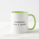Mug personalizado con diseño de texto minimalista de moda con "Probablemente gin & juice" en la tipografía sans serif clásica. Hace un buen regalo para ti mismo o para cualquiera a quien le guste los cócteles de ginebra, gin y jugo, o tazas de café con dichos graciosos. El texto es editable, por lo que puede personalizar en ambos lados. Disponible en varios estilos y colores diferentes.