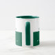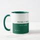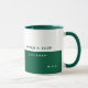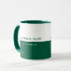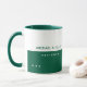 Sencilla y moderna taza de café verde oscuro personalizada con su propio nombre y profesión. Diseño mitad verde mitad blanco con estilo de fuente sans serif.