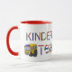 Una GRAN taza de kindergarten con letras hechas de lápices y lápices y un dibujo de un autobús escolar y una manzana. Es un regalo perfecto para cualquier profesor de guardería. Otros artículos con diseños similares disponibles en nuestra tienda en - www.zazzle.com/Teach1029