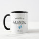 Este tazón de dos tonos, en blanco y negro, muestra el diseño "PROMOCIONADO CON GRANDPA" en una fuente encantadora, junto con los pies de bebé azules y el año EST. Es un regalo ideal para el Día del Abuelo, Navidades, cumpleaños o incluso como una deliciosa invitación de embarazo. ¡El futuro abuelo puede atesorar este aguafiestas para siempre!