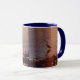 Taza Puesta del sol azul de la garza