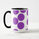 Puntos púrpuras grandes en un fondo blanco. Este diseño manchado púrpura y blanco es un modelo de la diversión. Un diseño enrrollado en un color púrpura agradable en blanco.