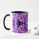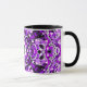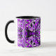 tazón de café con lilo de fondo ornamental abstracto, tonos púrpura sobre fondo negro