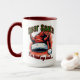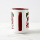 Un Navidad gracioso toca con el gorra de Santa y los cuernos del diablo.