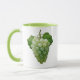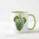 Ce mug présente une grappe de raisin vert d’un réalisme saisissant, accompagnée de feuilles bien dessinées aux teintes naturelles. L’illustration met en avant la fraîcheur et la pureté du fruit, sublimée par le contraste avec la poignée et l’intérieur vert clair du mug. Un visuel fruité, lumineux et parfaitement équilibré.