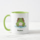 ¡Una taza con el ilustracion de una rana linda en su estanque y el texto de personalizable debajo! ¡Podría ser perfecto para un niño o un amigo que ama el animal y la naturaleza Kawaii!