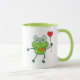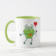 Rana leggy verde con los ojos que bombean divertidos y la cabeza grande mientras que sonríe abundante, camina inestable, pegándose la lengua hacia fuera, sosteniendo el globo rojo del corazón y sintiendo enojado en amor