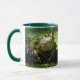 Añade un toque natural y caprichoso a tu café, té o bebida caliente favorita con esta taza de ambiente salvaje. Se vio a un grupo de pequeñas ranas verdes cubiertas de algas de pato frecuentando un estanque justo a las afueras del Lodge Minnekhada, pero este lindo hombrecito se llevó la torta con su inflexible "pose on a una manguera". Fotografiado a mediados de agosto de 2016. Basado en la fotografía original de W.H. Sim. Todos Los Derechos Reservados. Ver más en zazzle.com/walkswithnature