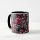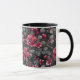 Taza Raspberry, flores borgoñas en gris oscuro