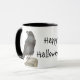 Un Raven encaramado en piedra en la Torre de Londres adorna esta taza de bonito ¡Feliz Halloween! Personalizar cambiando el texto si lo desea. Gracias al fotógrafo Gustav Sommer en Pixabay por hacer su hermosa fotografía disponible para mi referencia artística.