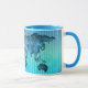 Taza Rayas azules de neón del mapa del mundo el |