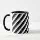 Cambia los colores de las rayas inclinadas hacia arriba de este diseño en tu taza de café a tu gusto, utilizando las muestras de color en la herramienta de edición de Zazzle. También puedes cambiar la dirección de las rayas invirtiendo el diseño, o cambiar el ángulo de inclinación girando el diseño según sea necesario, utilizando la herramienta de rotación o el asa de rotación que aparece cuando se selecciona el diseño.