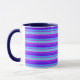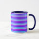 Mug de rayas violeta violeta azul brillante creativo. Tiras horizontales violetas azul violeta. Diseño de color azulado rayado de la taza. Alfombras artísticas originales de rayas. Vibrante paleta azul estriado de la taza. Diseño de patrones de líneas geométricas.